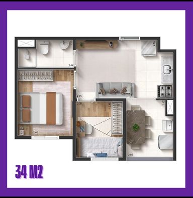 Apto 34 MTS com 02 dormitórios 292.000,00