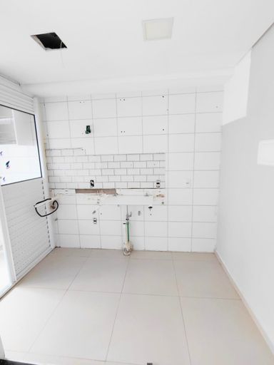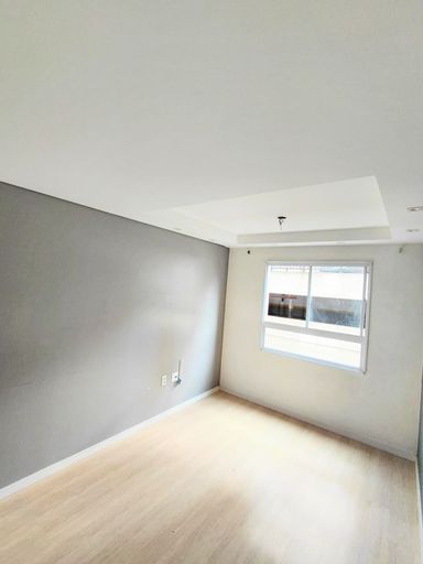 Apartamento com 2 dormitórios, sala e cozinha integrada, banheiro social e área de serviço.