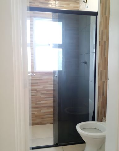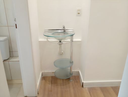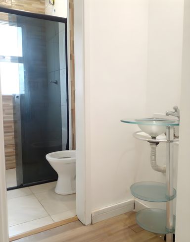 Banheiro com box e lavatório externo