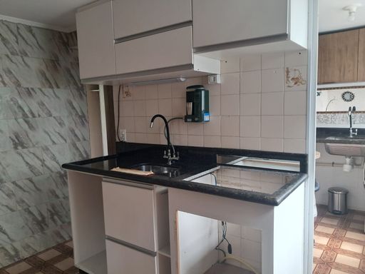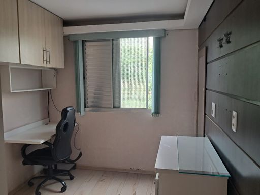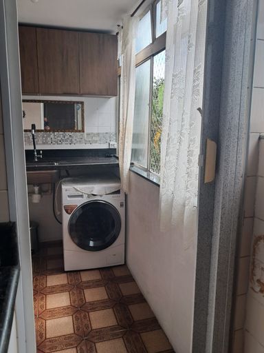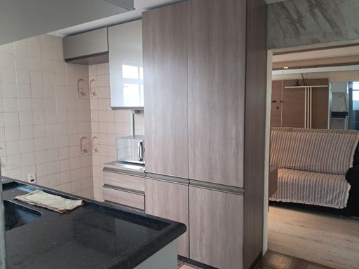 Lindo apartamento com 56 metros, três dormitórios , sala, cozinha com armários, área de serviço , banheiro e vaga de garagem coberta e fechada.