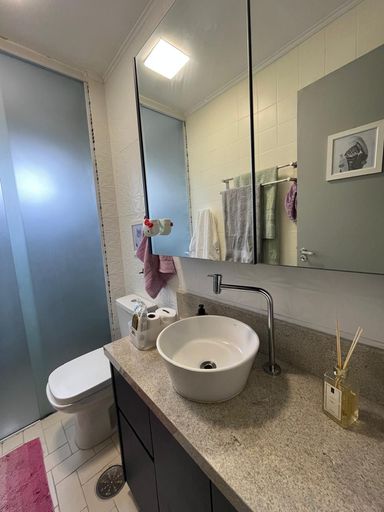 O condomínio oferece completa área de lazer com academia, churrasqueira, salão de festas, salão de jogos, quadra poliesportiva e playground.
