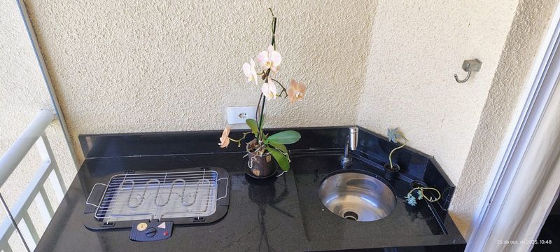 Piso em porcelanato em todos os ambientes Sacada gourmet com pia, churrasqueira elétrica e fechamento em vidro Aquecedor a gás