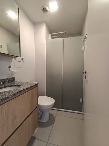 Possuí janelas blackout, armários na cozinha e lavanderia, pia em granito preto, cooktop por indução, suggar/depurador de ar, armários planejados nos quartos, sala com varanda, banheiro com box de vidro, gabinete e espelho.