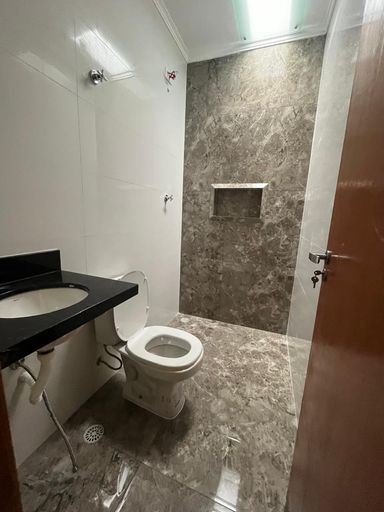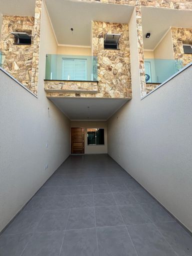 Sobrado novo com 115m² bem distribuídos, composto por 3 dormitórios, sendo 1 suíte com sacada, banheiro social e lavabo.